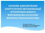 Ганженко О.М., к.т.н., зав.відділом технологій вирощування біоенергетичних рослин ІБКіЦБ: Наукове забезпечення енергетичної автономізації агропромислового виробництва на основі використання біопалива
