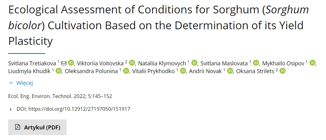 Метою дослідження було оцінити екологічну пластичність врожаю сорго в різних ґрунтово-кліматичних регіонах України. Сорго (Sorghum bicolor) є актуальною культурою для України.