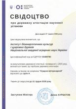 За результатами всебічного аналізу наукової, науково-технічної та інноваційної діяльності нашої установи Інститут визнано таким, що пройшов державну атестацію, і віднесено до групи А за напрямом "Аграрно-ветеринарний". Це найвищий рівень, який підтверджує, що Інститут: