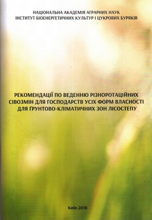 РЕКОМЕНДАЦІЇ ПО ВЕДЕННЮ РІЗНОРОТАЦІЙНИХ СІВОЗМІН ДЛЯ ГОСПОДАРСТВ УСІХ ФОРМ ВЛАСНОСТІ ДЛЯ ГРУНТОВО-КЛІМАТИЧНИХ ЗОН ЛІСОСТЕПУ за участю і редакцією Я.П. Цвея, д.с.-г.н, професора ІБКіЦБ НААН України
