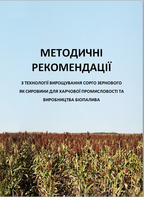 За результатами досліджень, проведеними впродовж 2016-2020 рр. згідно завдання 16.00.02.03.Ф. Розробити методичні основи та здійснити порівняльну оцінку енергетичного потенціалу зернового сорго як сировини для виробництва біопалива. (РК 0116U002198) в ІБКіЦБ НААН розроблено і видано Методичні рекомендації з вирощування сорго зернового як сировини для харчової промисловості та виробництва біопалива (ISBN 978-617-8007-02-7).