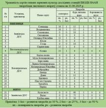 Показники ступеня ураженості сортів озимих зернових культур мережі дослідних станцій ІБКіЦБ показані у таблиці.