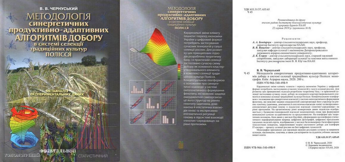 Вийшла друком монографія В.В. Чернуського Методологія синергетичних продуктивно-адаптивних алгоритмів добору в системі селекції традиційних культур Полісся: монографія. Київ: Аграрна наука, 2020. 200 с. ISBN 978-966-540-498-9
