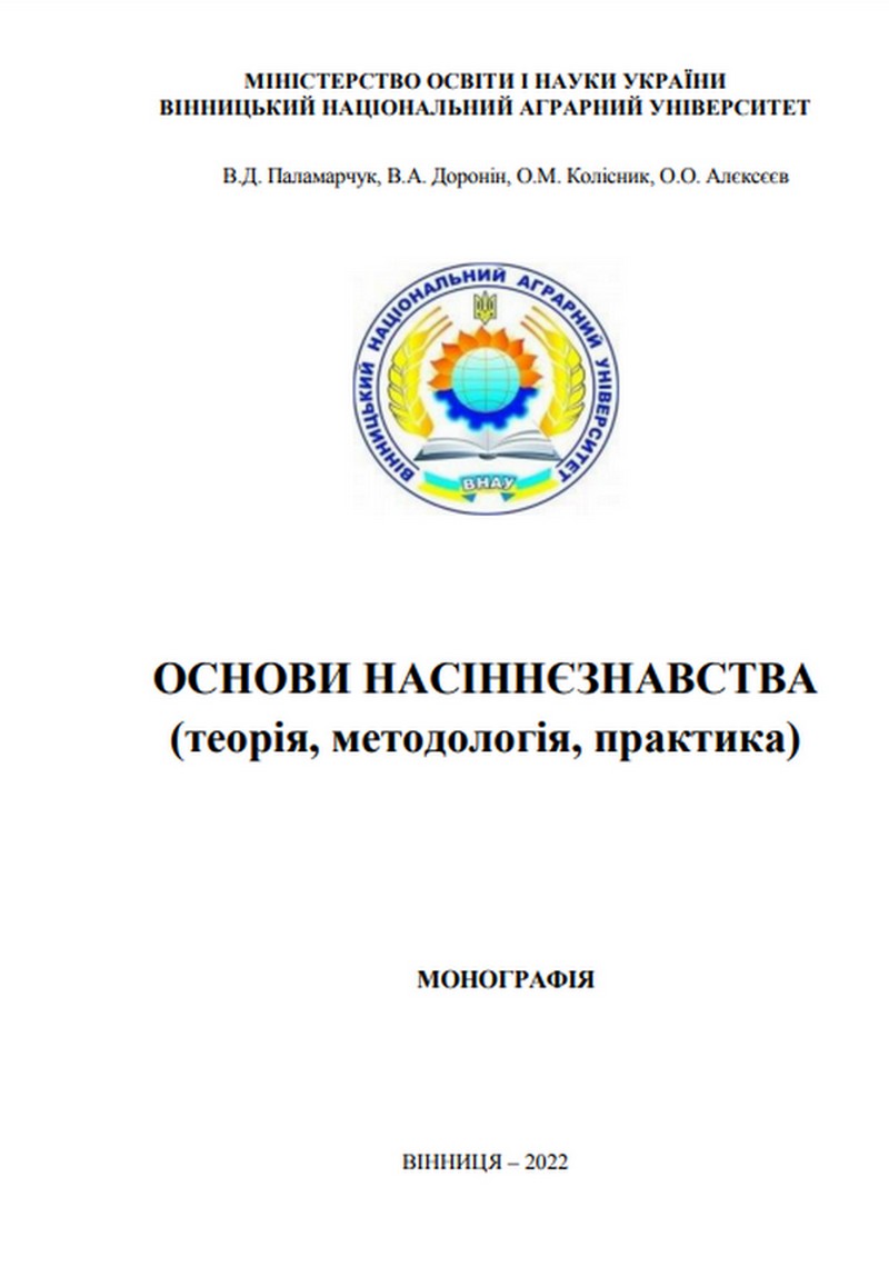 Основи насіннєзнавства (теорія, методологія, практика): Монографія/ В.Д Палпмарчук, В.А. Доронін, О.М. Колісник, О.О. Алексеєв. Вінниця. Друкарня ТОВ «Друк». 2021. 392 с.