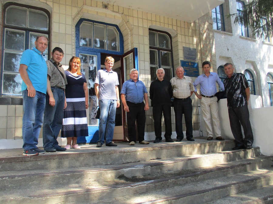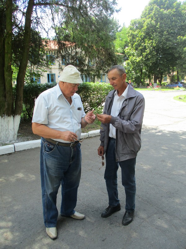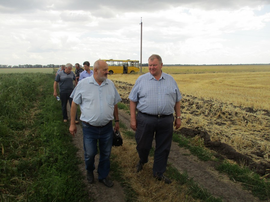 Директор Веселоподільської ДСС Мороз Олег Васильович, директор ДПДГ «Шевченківське» Балагура Олег Вікторович обговорюють перспективи розвитку дослідно-селекційних станцій та дослідних господарств мережі ІБКіЦБ.