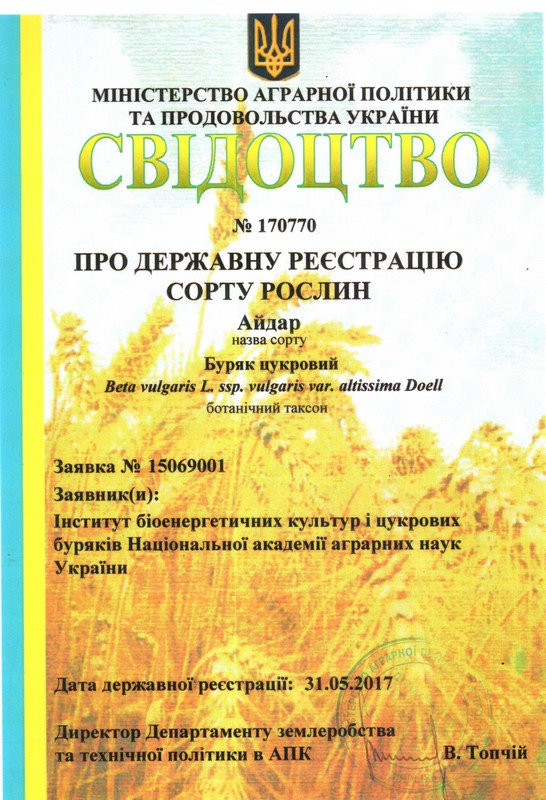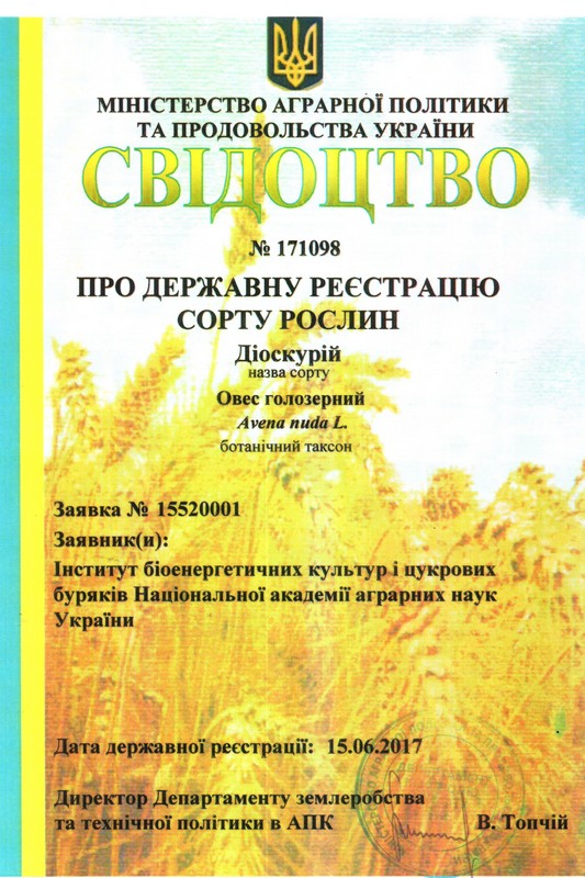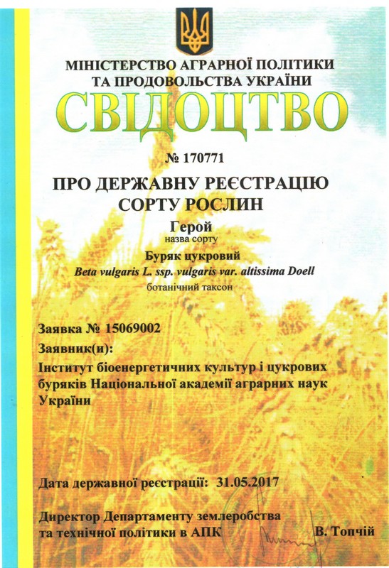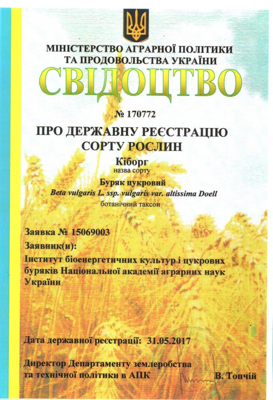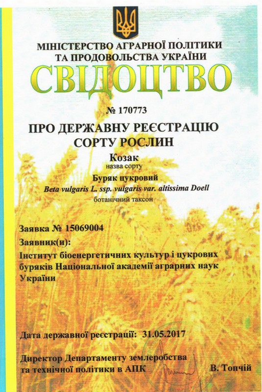 Селекціонерів інституту та його мережі з отриманням свідоцтв про державну реєстрацію сортів рослин: