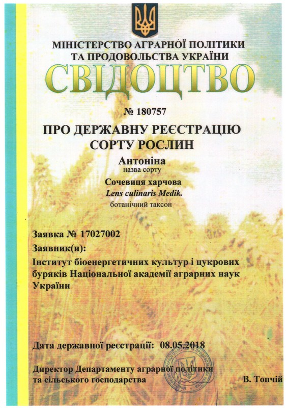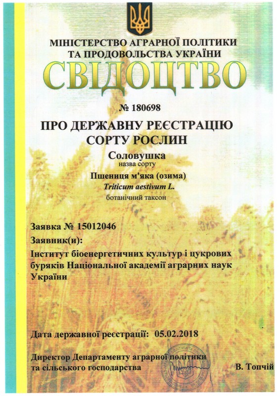 Селекціонерів інституту та його мережі з отриманням свідоцтв про державну реєстрацію сортів рослин: