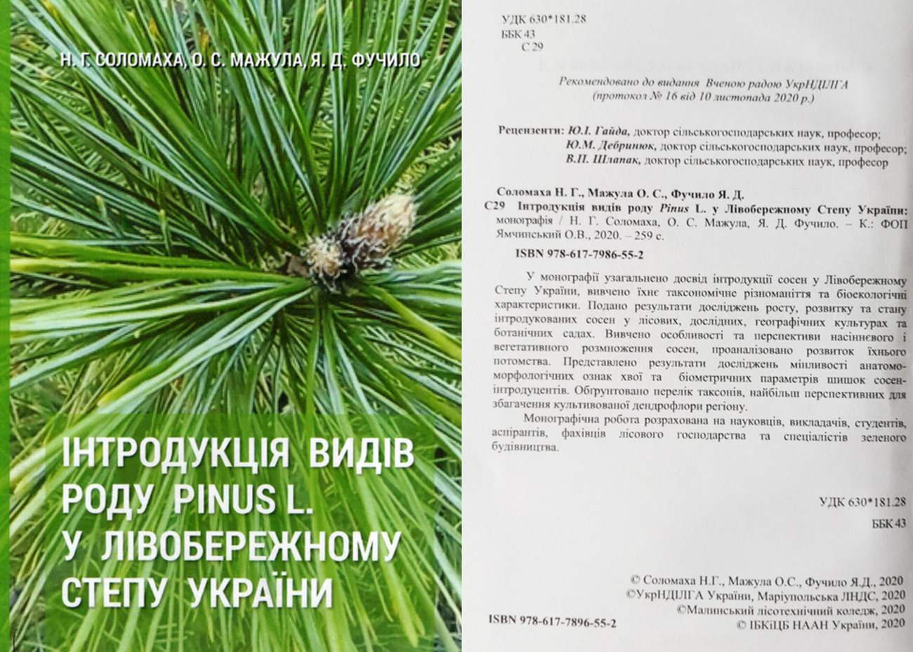 Інтродукція видів роду Pinus L. у Лівобережному Степу України: монографія/ Н.Г. Соломаха, О.С. Мажула, Я.Д. Фучило – К.: ФОП Ямчинський О.В., 2020. 259 с. ISBN 978-617-7986-55-2