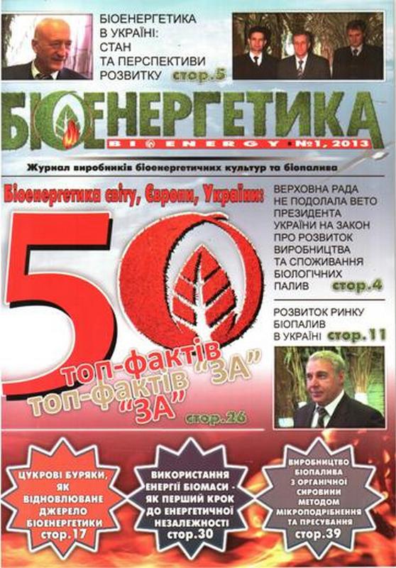ЖУРНАЛ "БІОЕНЕРГЕТИКА/BIOENERGY" №1 2013 РОКУ